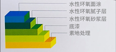3. 中涂层:将水性环氧中涂材料加入适量的石英砂和滑石粉调配成中涂砂浆进行批刮。